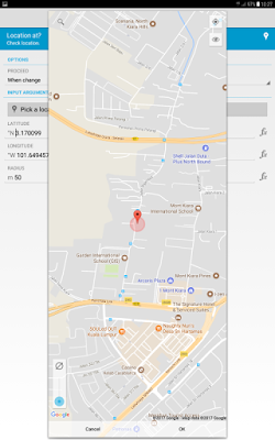 Before you can use this flow, you need to tell it where is your home. This can be done by tapping on Block 12 "When at location". The following screen will come out.
