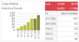 We can find the following 38 stocks with net profit chart that shows continuous growth over the recent years and forecasted to continue growing in the upcoming 2 years, by a quick screening through the Detailed Analysis. This is useful to perform initial filtering for investment stock picking.